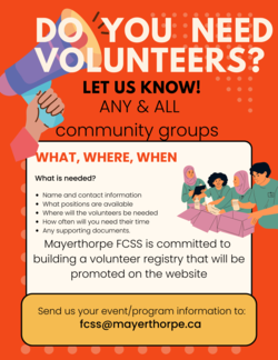 For more information, contact the Town of Mayerthorpe’s Family and Community Support Services (FCSS) at (780) 786-2416 ext. 223.