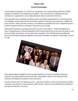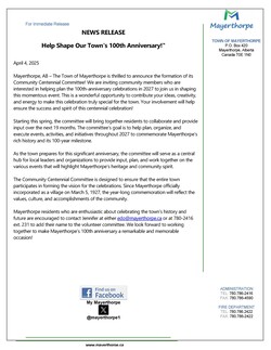 News Release-Help Shape Our Town's 100th Anniversary! COUNCIL COMMUNIQUE - MISSION: INDIA COUNCIL COMMUNIQUE - MISSION: INDIA MAYOR'S VIDEO - MISSION: INDIA Press Release Press Release - Northern Regional Economic Development Program - Main Street Rehabilitation Project